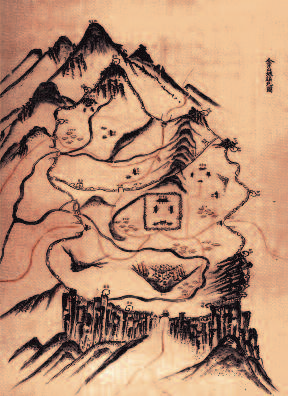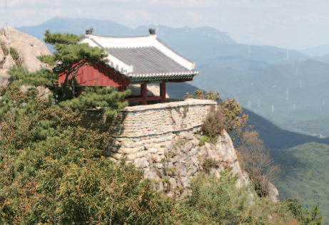 해발550m의암벽단애위에 절묘하게얹혀있듯이서 있는 제3망루는 북문까지 3km이고 동문은 1km의 거리이다.