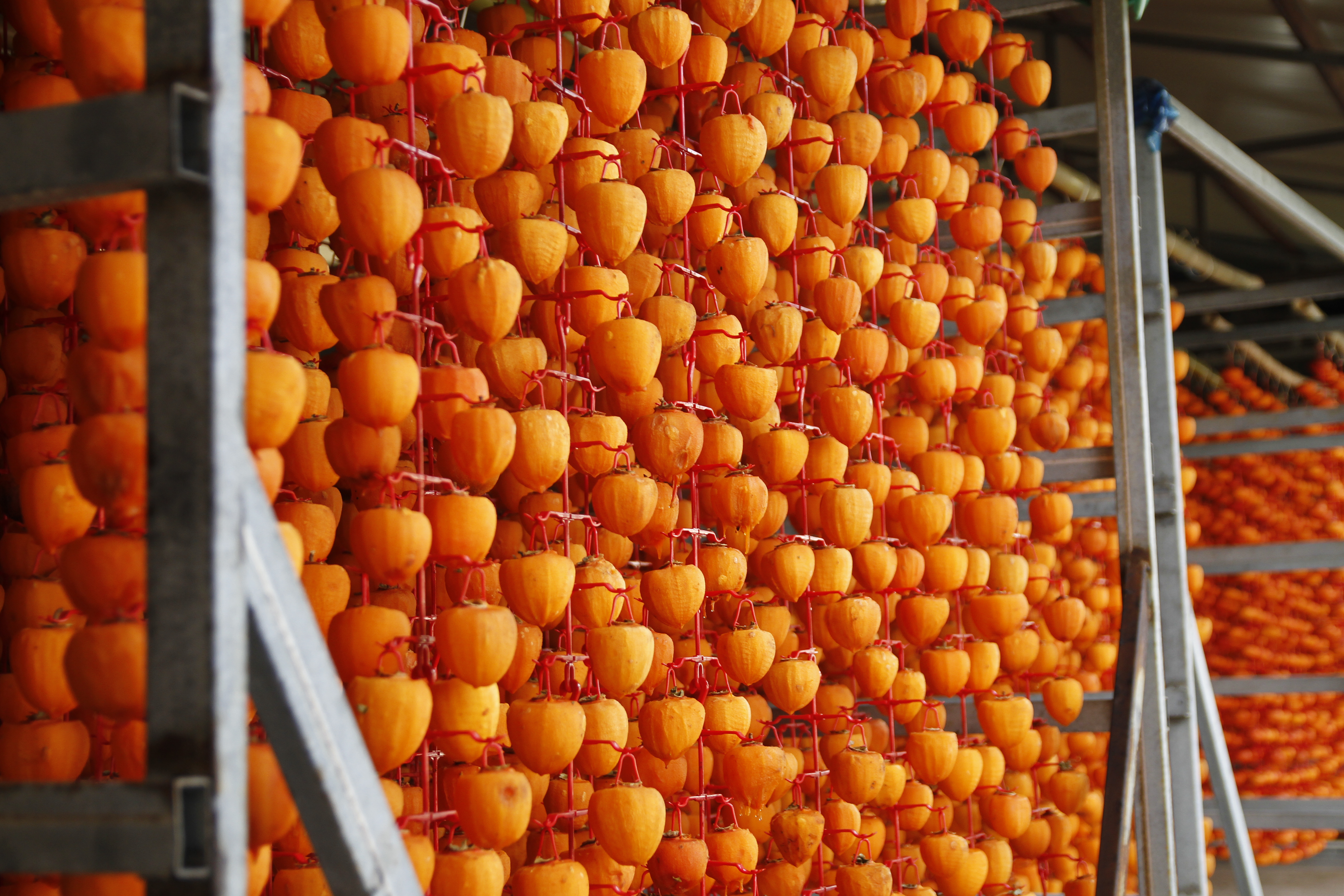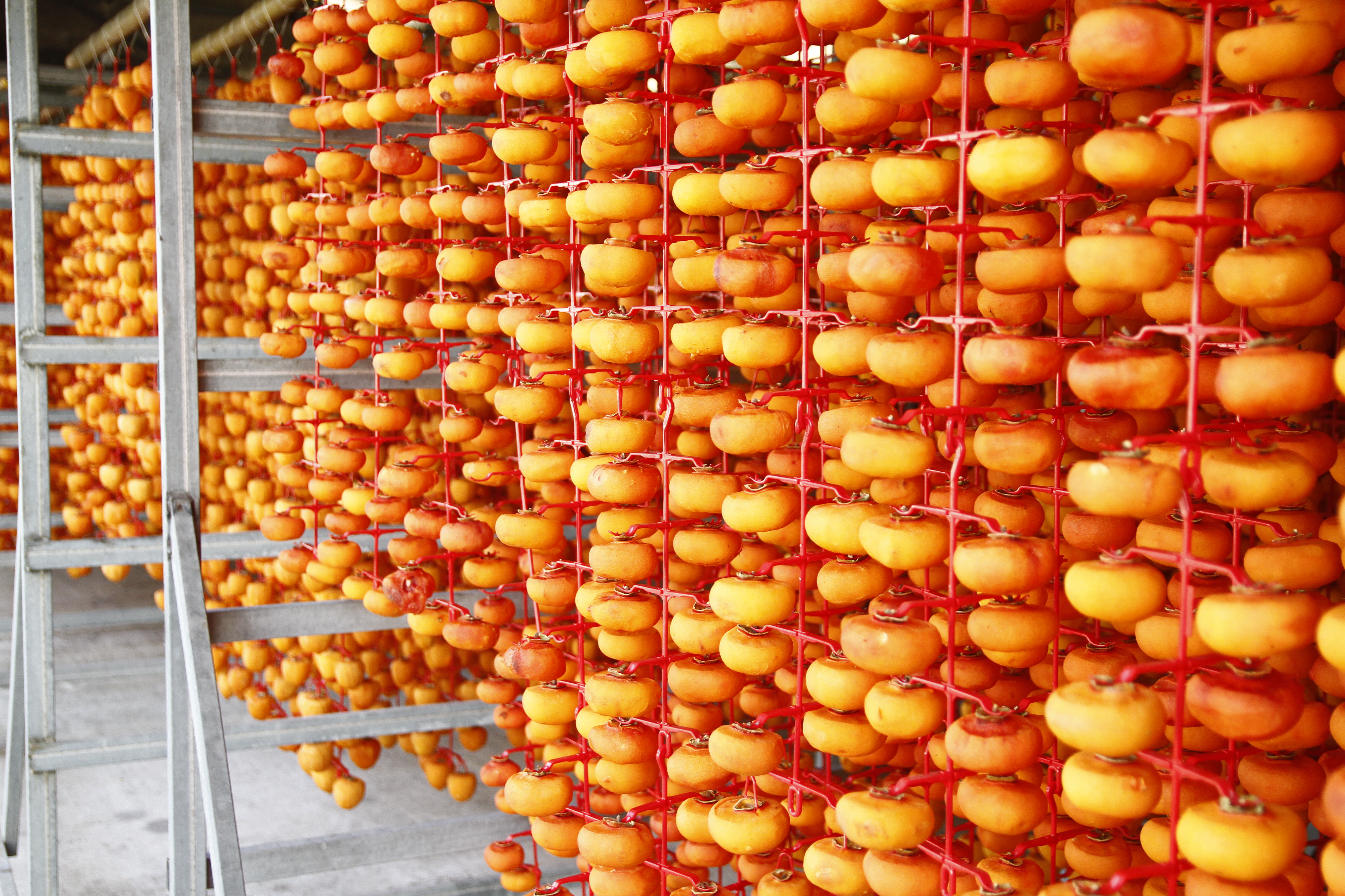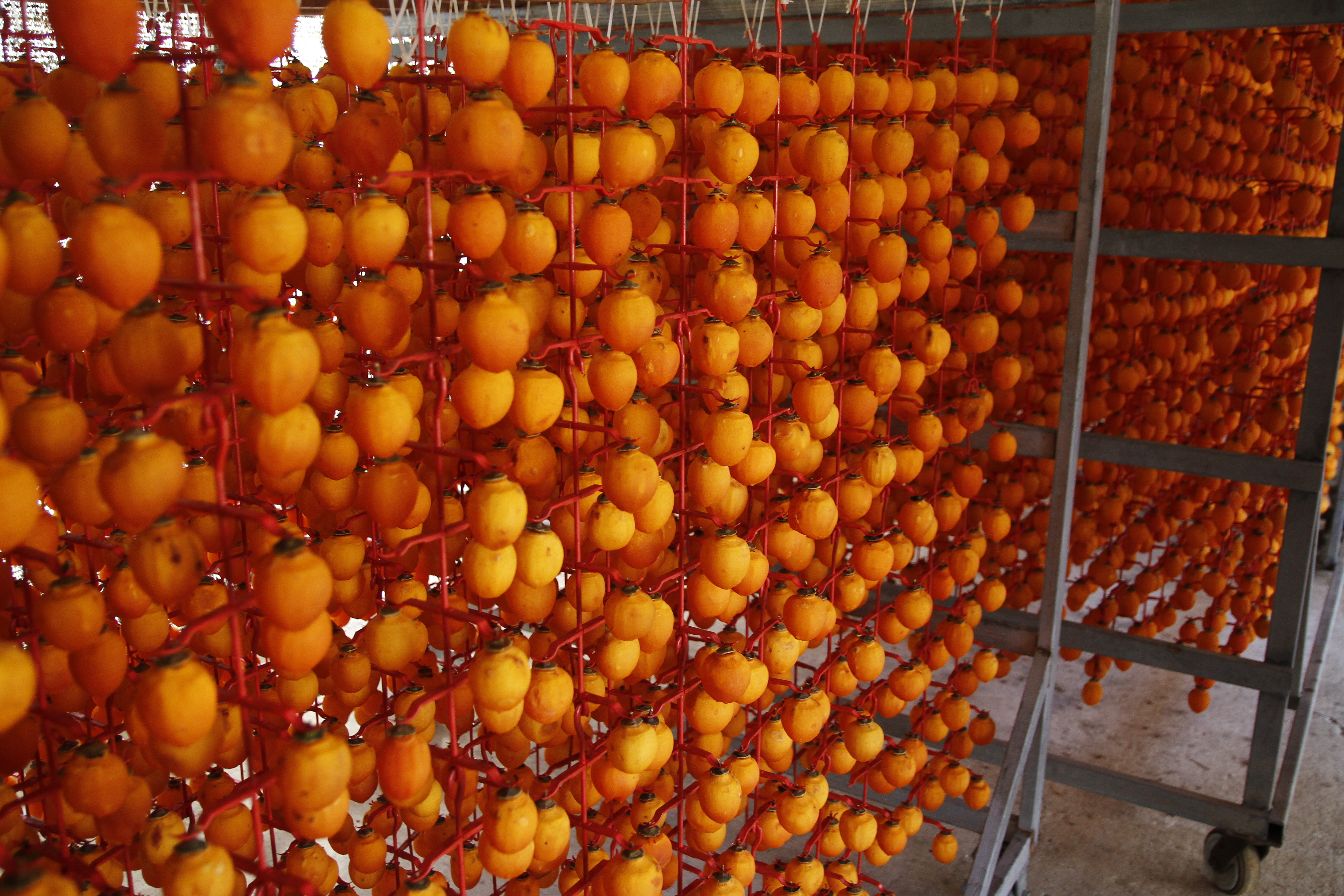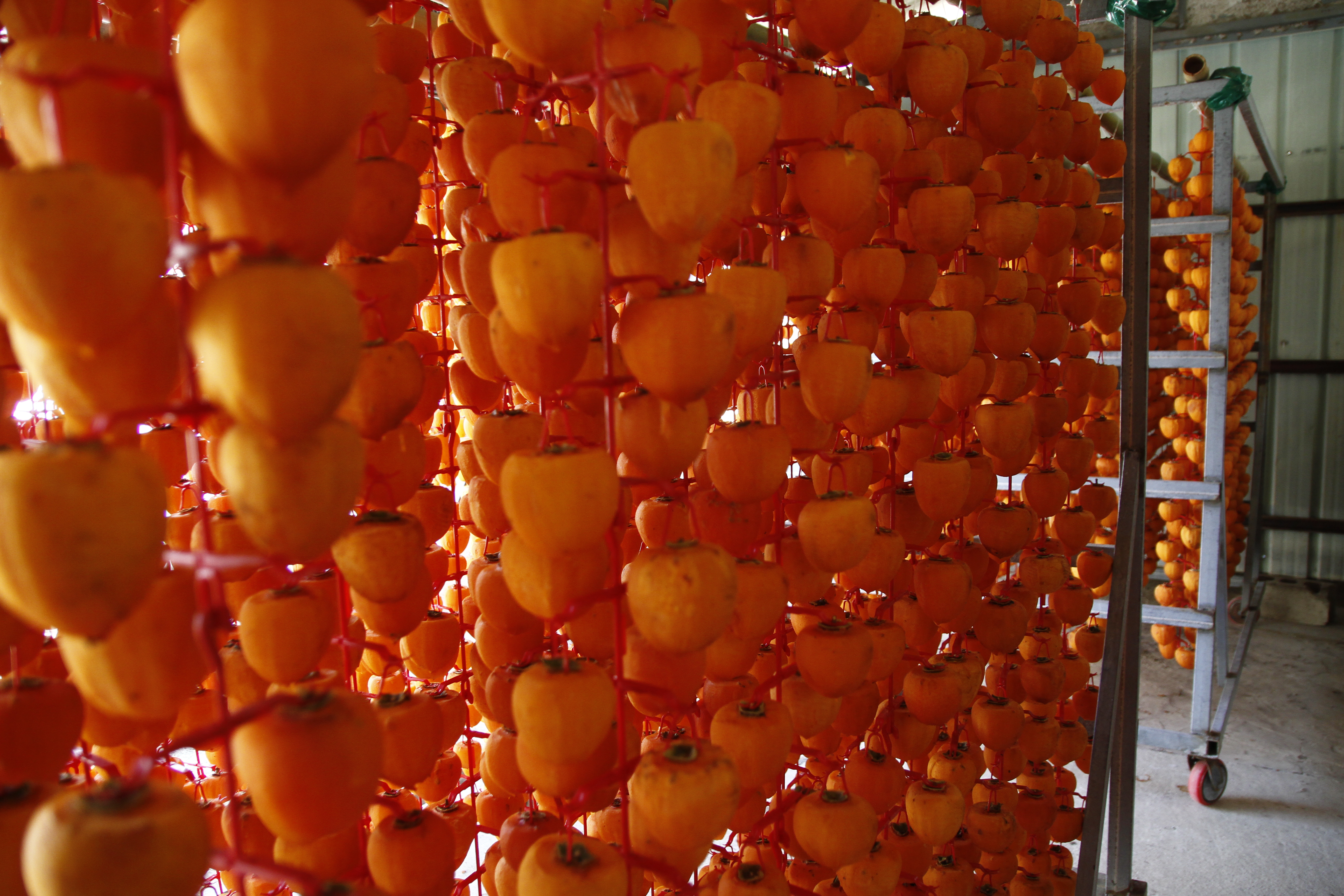 추운 겨울에 호 호 불며 정성껏 매달아 말리는 함안 곶감.