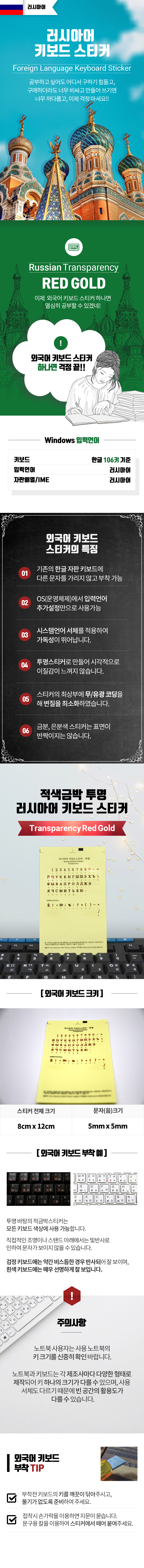 키보드에 붙여서 사용 할 수 있는 러시아어 키보드 붉은금박 스키커