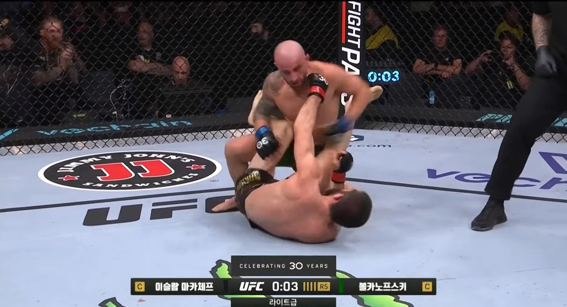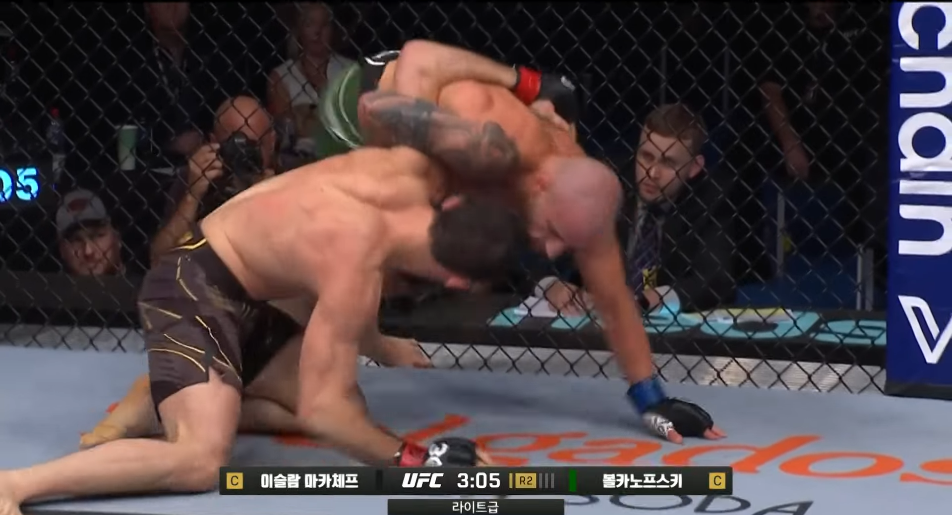 5라운드 후반 볼카의 타격 적중과 동시에 거센 공격, 마카체프의 손목 컨트롤과 방어!