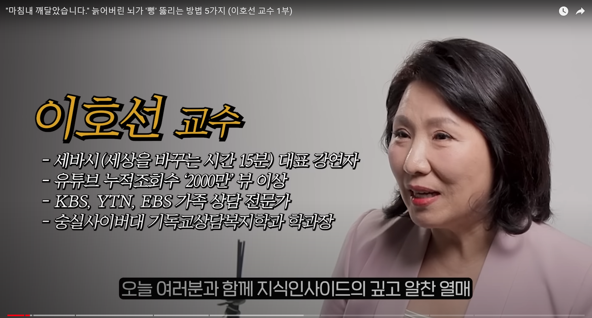 "마침내 깨달았습니다." 늙어버린 뇌가 '뻥' 뚫리는 방법 5가지 (이호선 교수 1부)