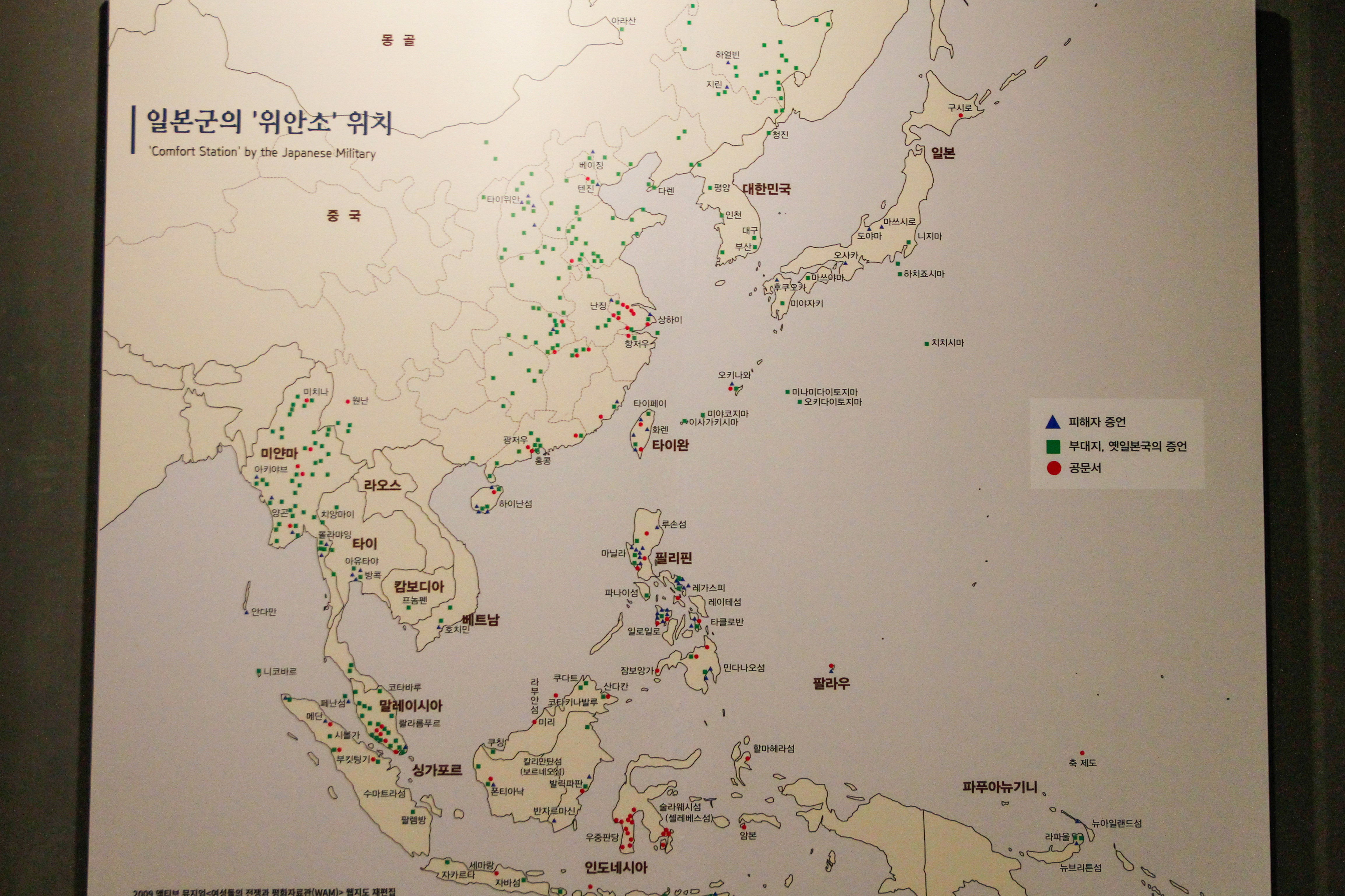 일본군 위안소의 위치. - 전쟁 중 이렇게 많은 부대에 위안소가 설치되었었다.