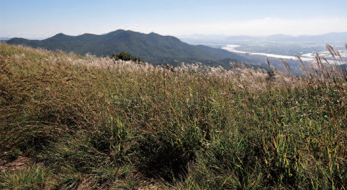 능선에서 남쪽으로 30m 떨어진 옹달샘을 지나 솔밭을 벗어나 억새풀지대에 들어서면 의상대 남쪽 안부에 올라서는 것은 금방이다.