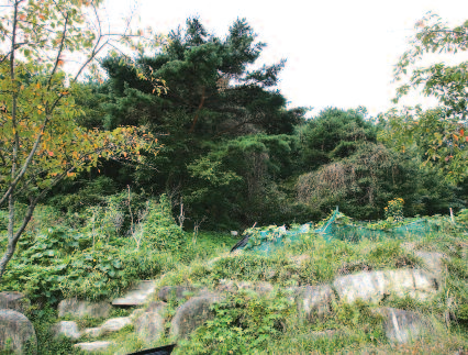 오른쪽(북)으로 방향을 바꿔 가다 조금 가파른 비탈에 올라서면 곧 보이는 무덤앞을 지나면 왼쪽에 갈림길이 있다. 능선으로 바로 붙는 길이다. 사람이 많이 다니지 않은 듯 초입은 길이 희미하지만 올라보면 그렇지 않다.