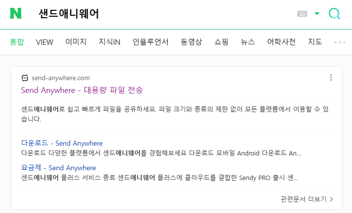 1. 네이버에서 '센드애니웨어' 검색 또는 아래 사이트에 직접 접속합니다.