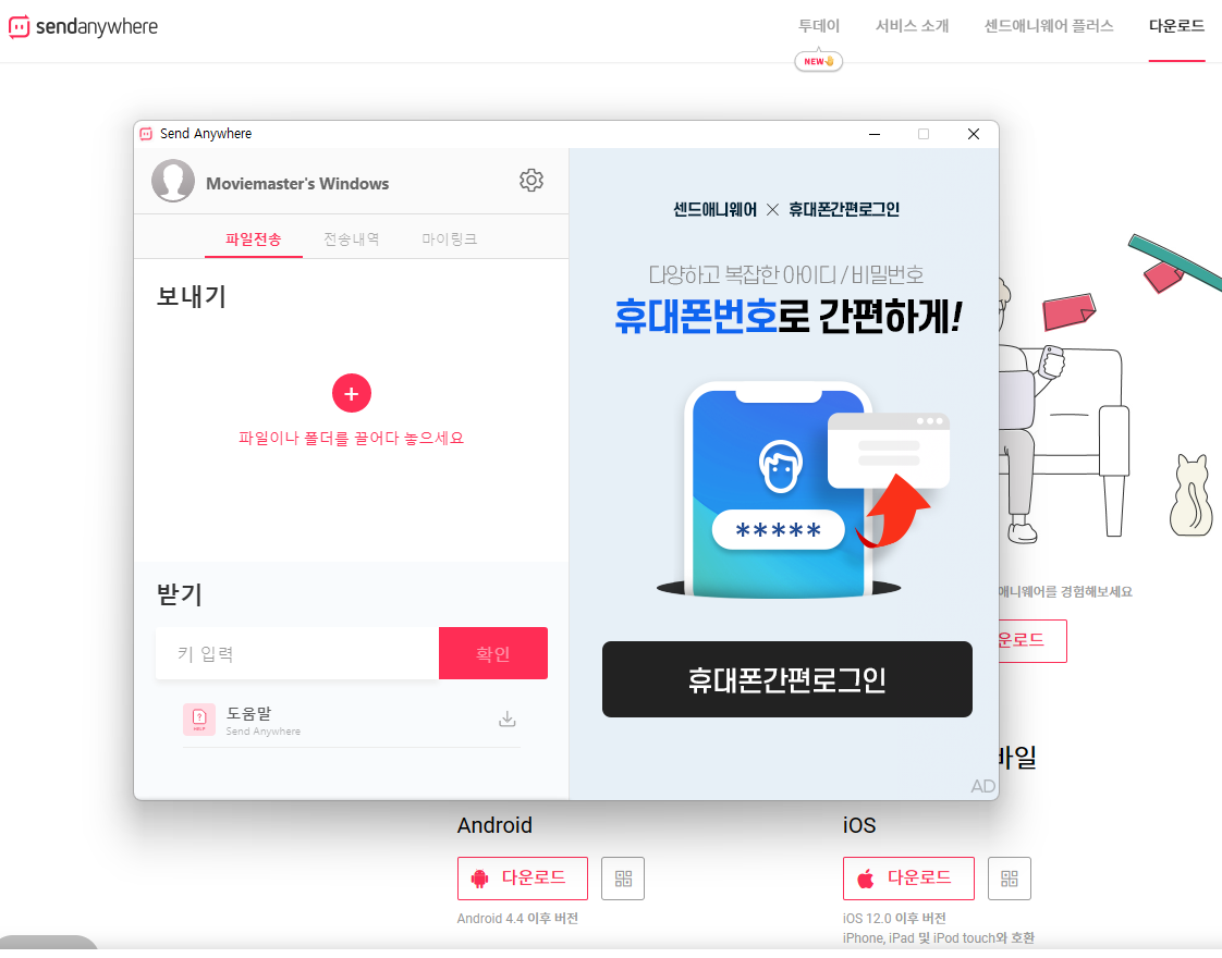 센드애니웨어, Sendanywhere, 대용량 파일전송, PC에서 폰으로 파일전송, 무료 파일전송프로그램, 파일관리의 최강자