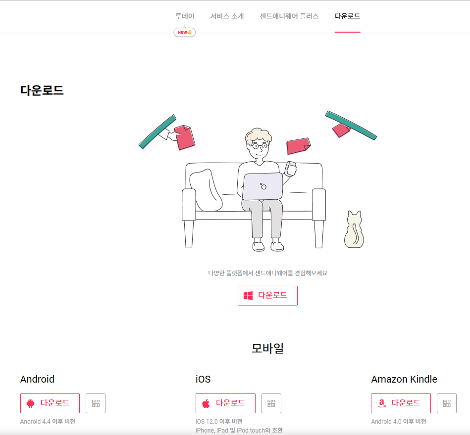 2. 접속 후 상단의 다운로드 메뉴를 클릭하면 아래 페이지로 이동합니다.