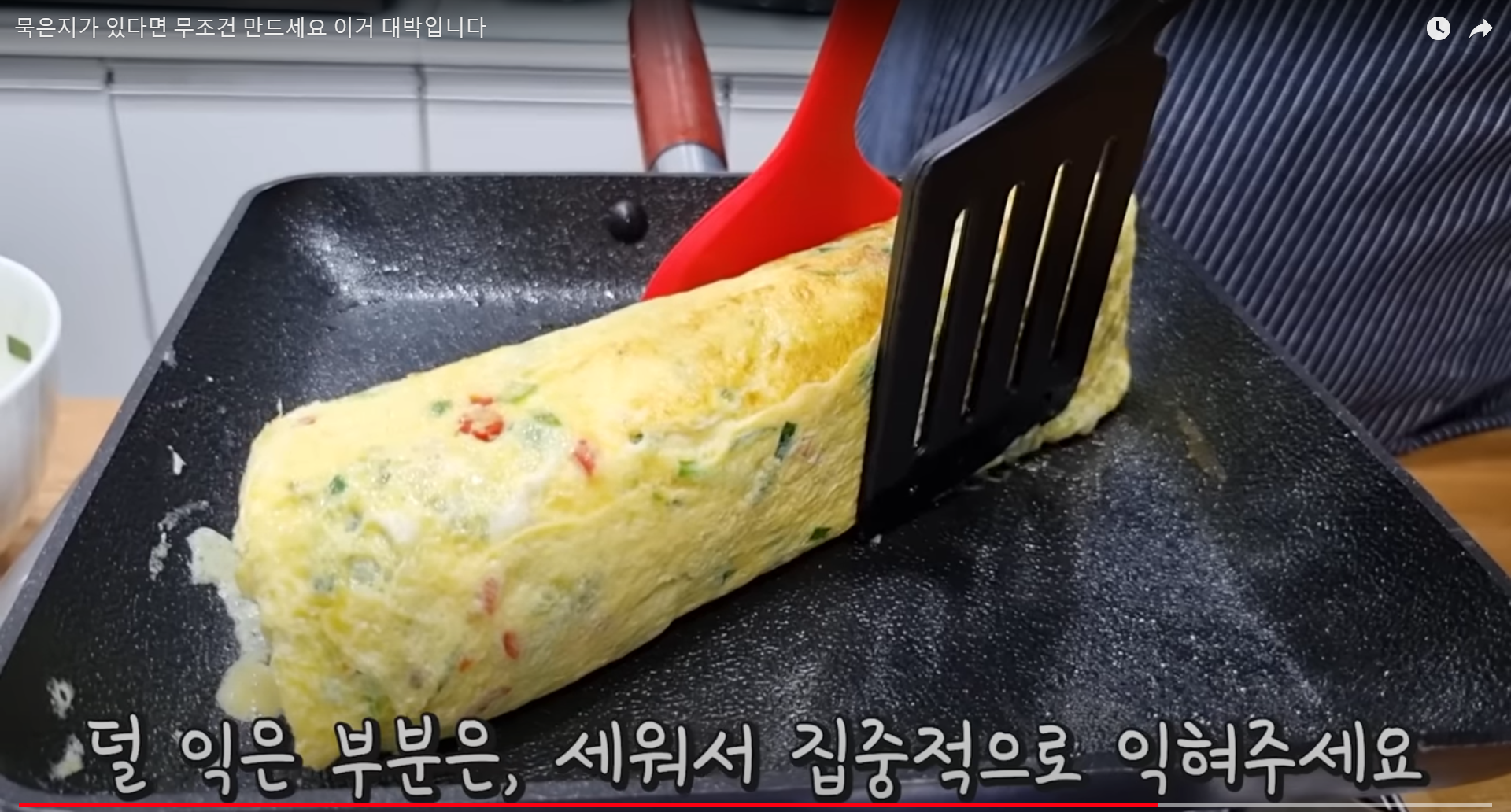 덜 익은 부분은 세워서 익히고, 계란말이의 각을 잡아준다.