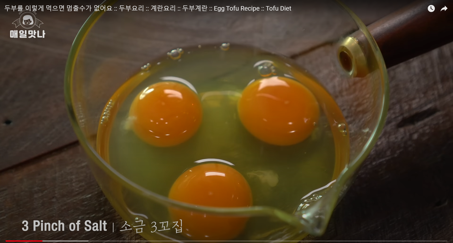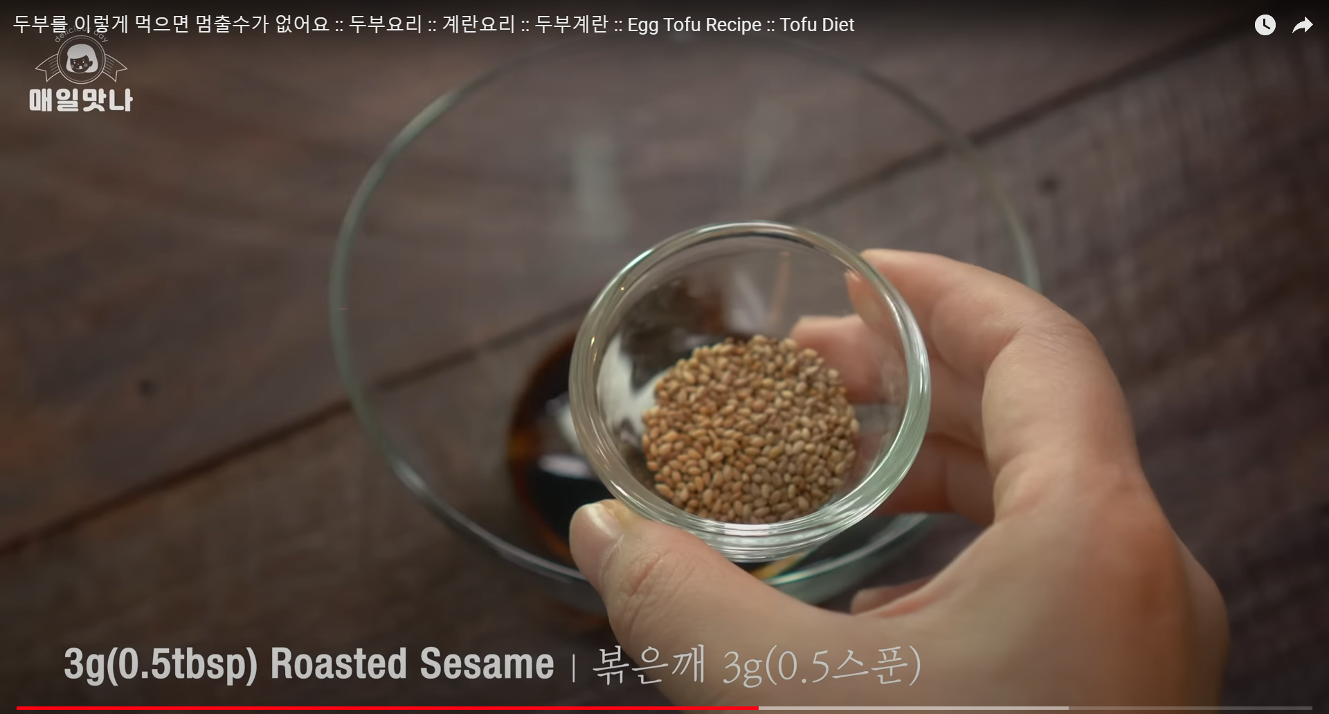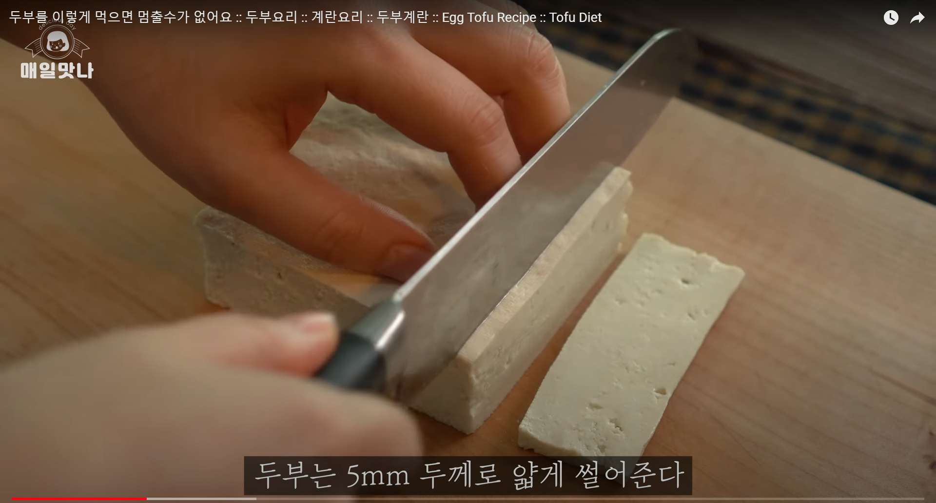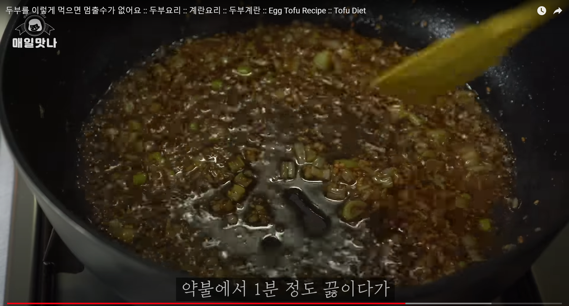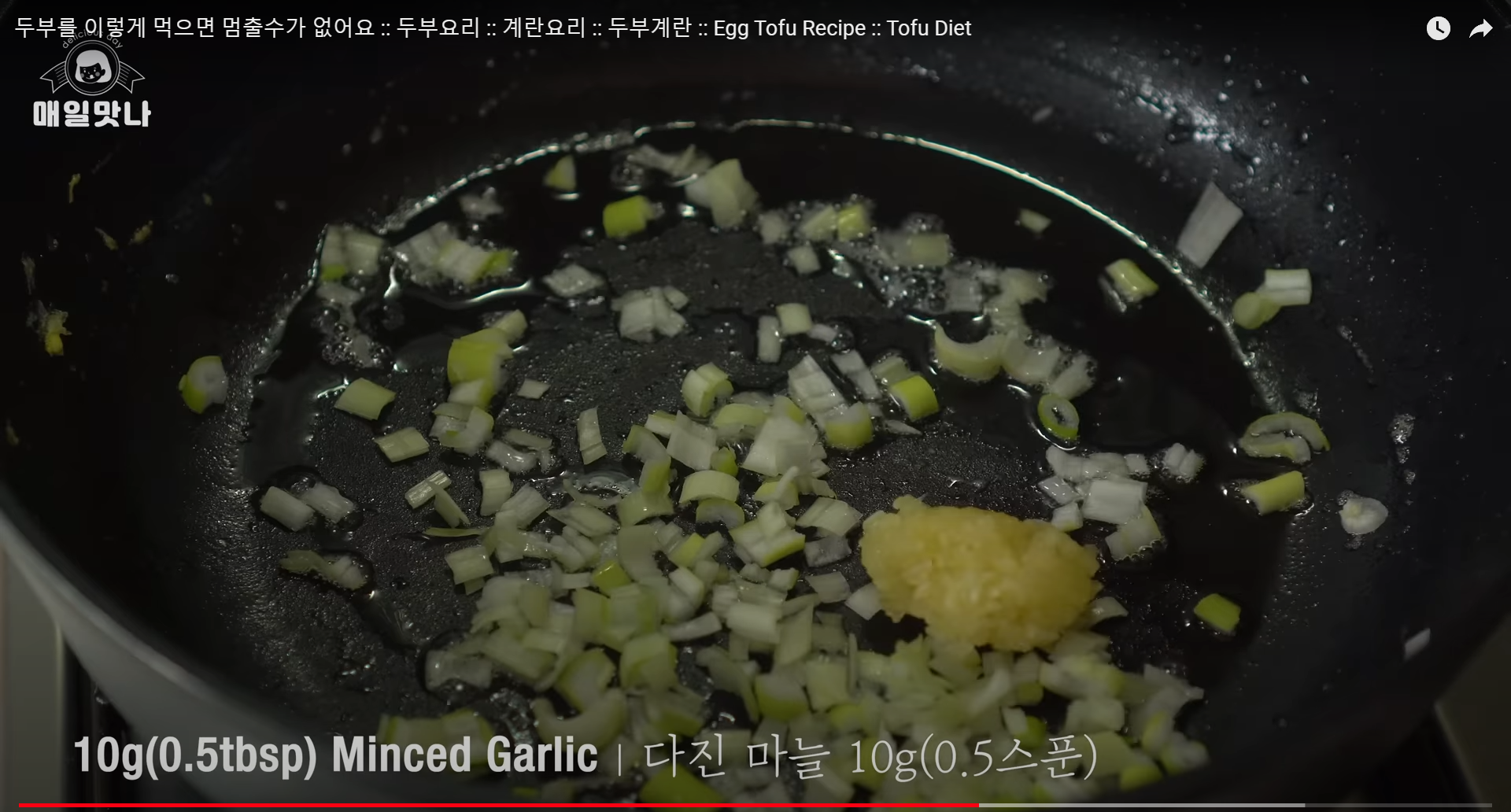 - 후라이팬에 두부와 계란을 처음부터 깔지 않는 이유는, 음식은 팬을 달군 다음에 넣어야 맛있어요.