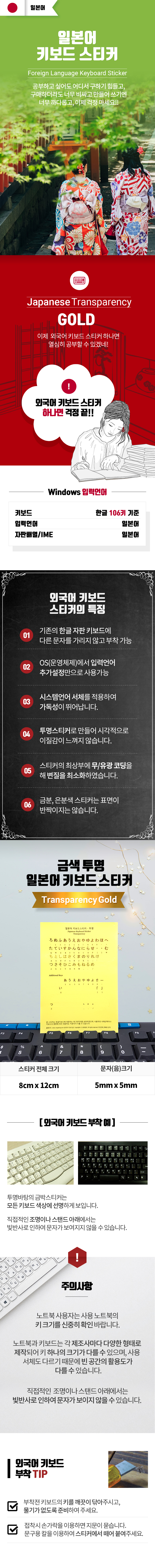 일본어키보드, 일본어자판, 일본어 키보드 투명바탕 금박글씨 스티커, 외국어키보드