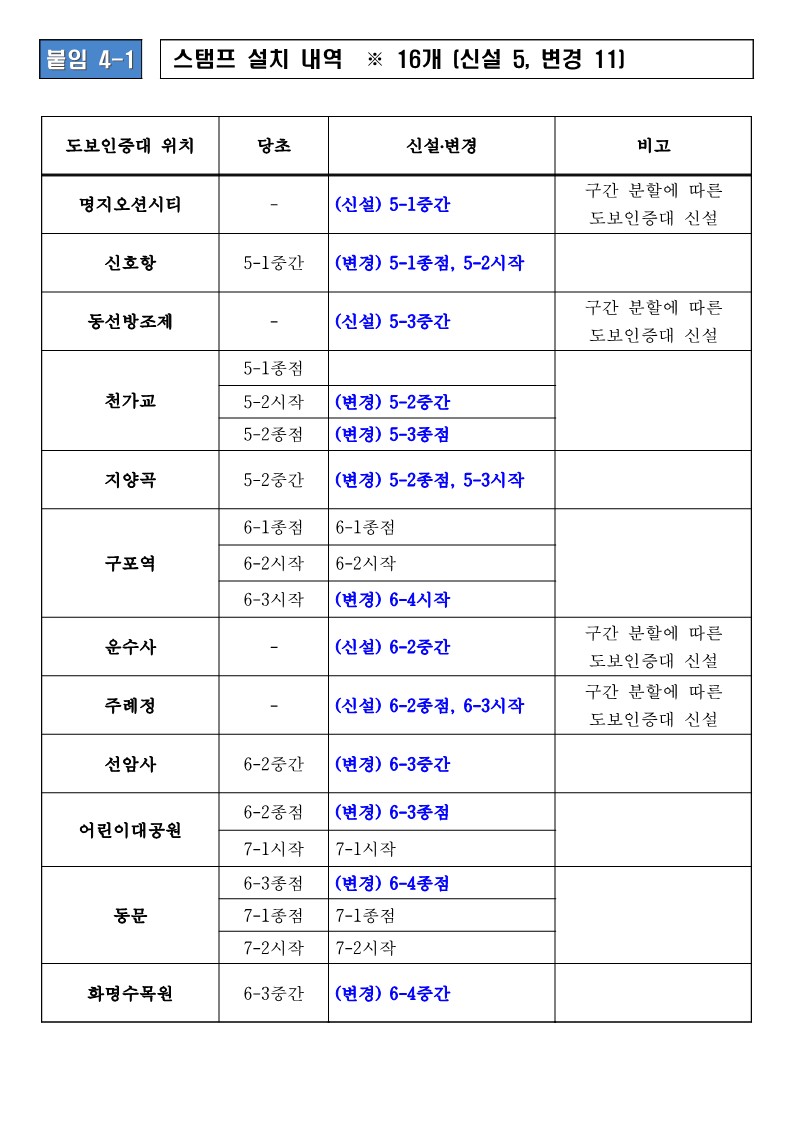 ◦ 도보인증대 신규 및 이전 설치(6개소) : 붙임4