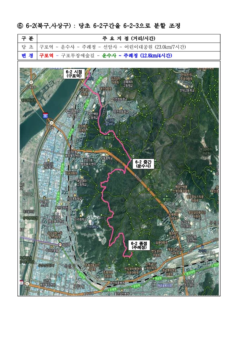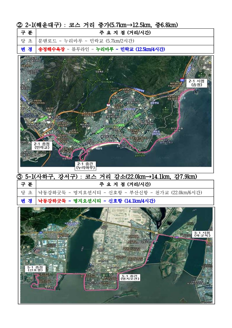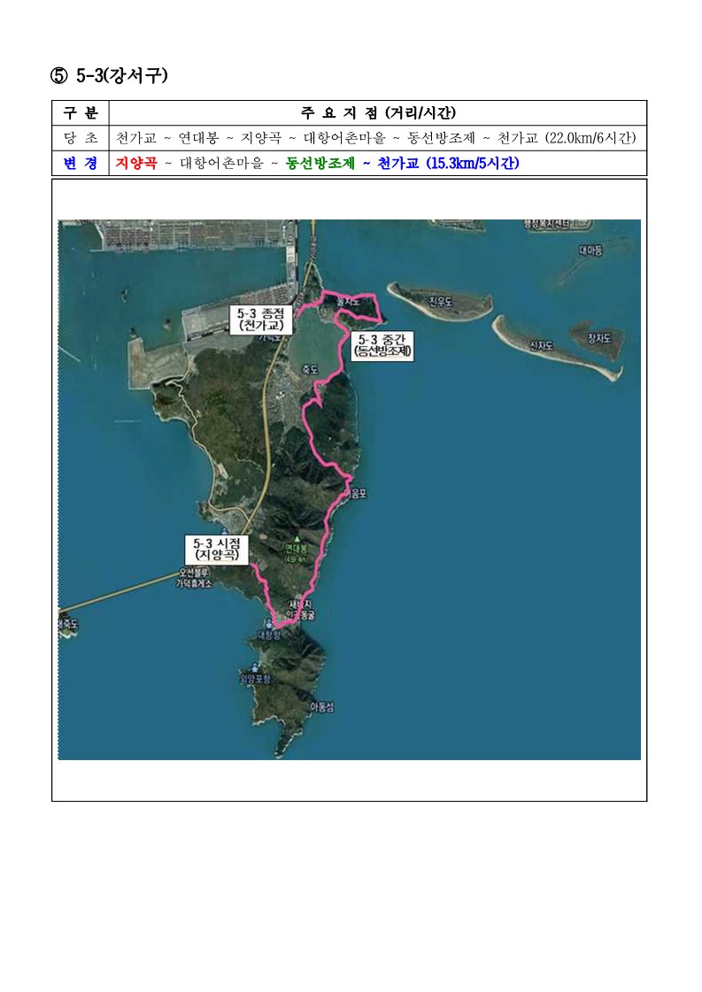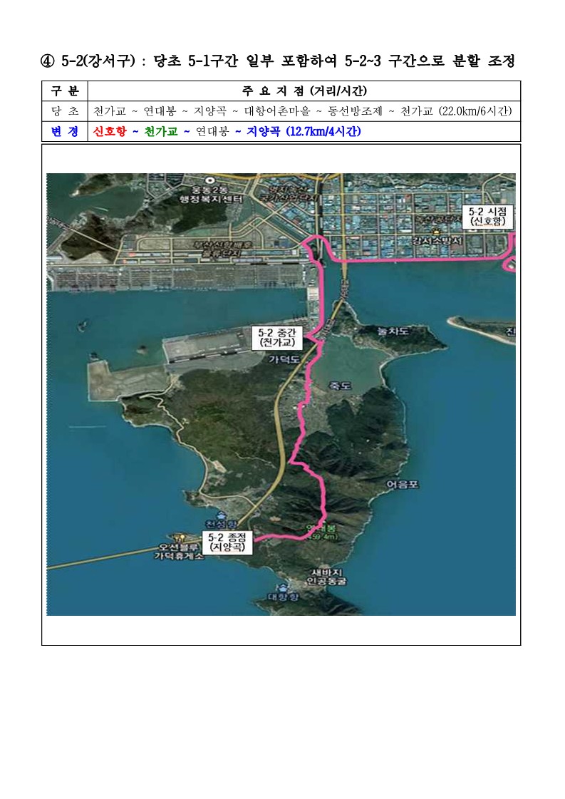 3. 변경사항 : 총 거리 변동 없음 (당초 21개 구간 → 변경 23개 구간)