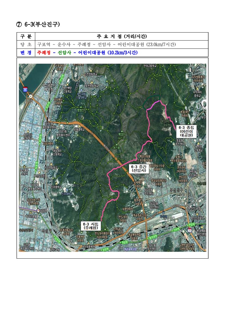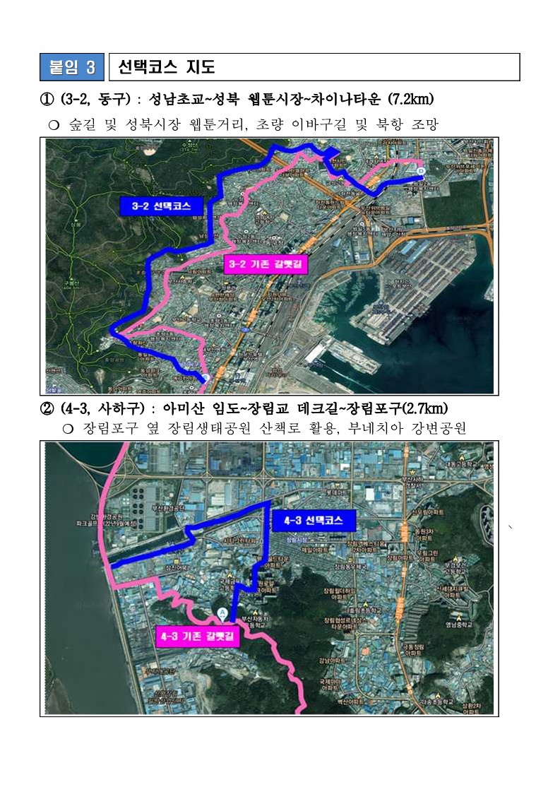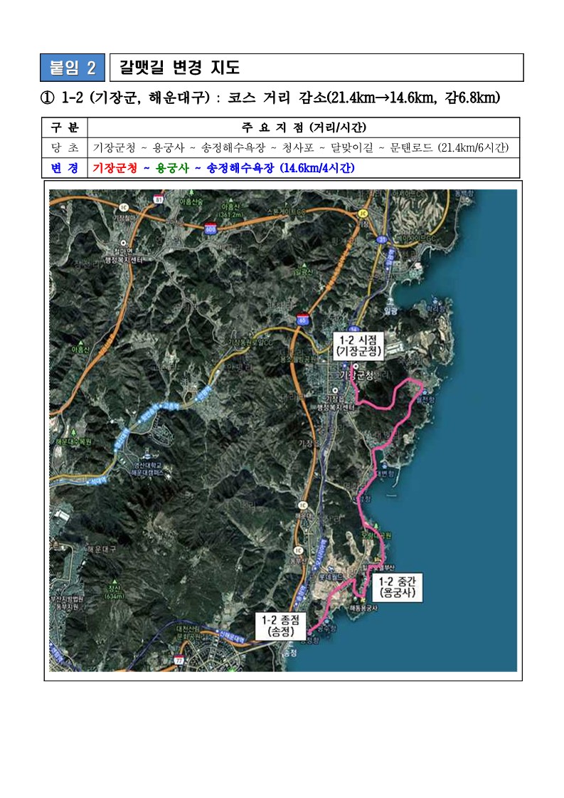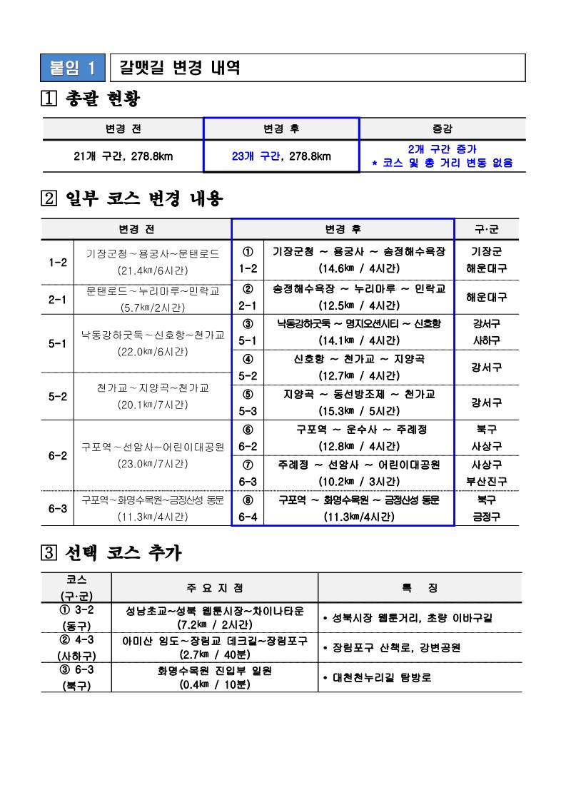※ 세부내역 : 붙임1(변경내역), 붙임2(변경지도), 붙임3(선택코스)