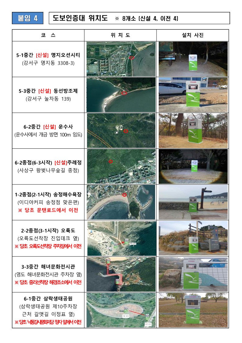 ※ 태풍 피해로 유실된 도보인증대 재설치(2개소) : 붙임4