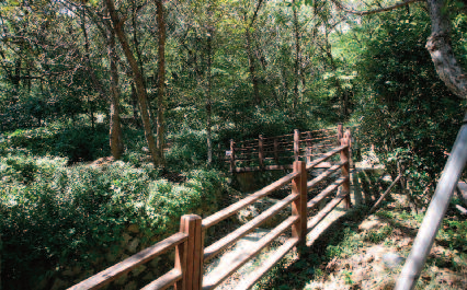 윗길이‘동래구민의 숲’으로 가는 등산로다. 소나무 숲으로 둘러싸인 윗길로 들어서면 급경사는 아니지만 계속 고도를 높여간다. 산길 주변에는 계곡물을 끌어 쓰던 오래된 파이프들이 방치되어 있다. 수도가 들어와 계곡물을 먹지 않으면 쓸모없는 파이프는 설치했던 사람이 철거하는 것이 당연하지 아닐까. 여기서도 또 시민의 비양심과 공무원의 무관심을 본다. 즐거워야 할 산행에서 조금은 짜증이 나지만 7~8분 오르 면 계곡을 건너게 된다.
