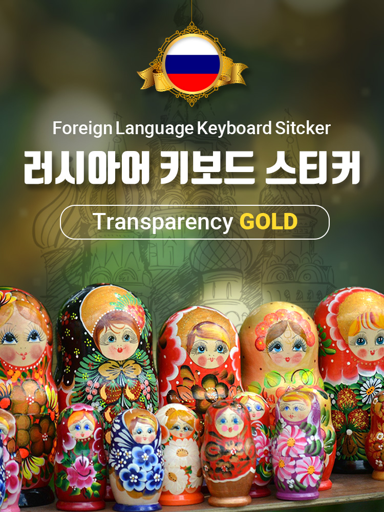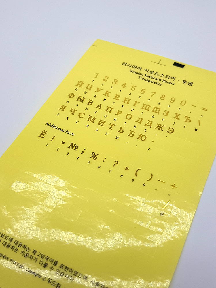 러시아어 키보드 자판 러시아키보드스티커, 투명바탕 금박 스티커 - 외국어키보드, Russian Keyboard Sticker, 모야모이