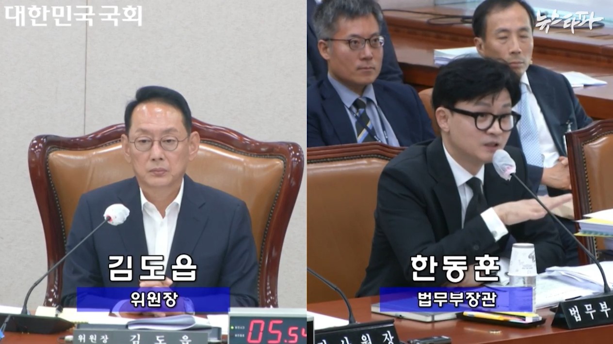 ▲ 지난 26일, 한동훈 법무부 장관이 국회에 출석해 김도읍 국회 법제사법위원장의 질의에 답변하고 있다.