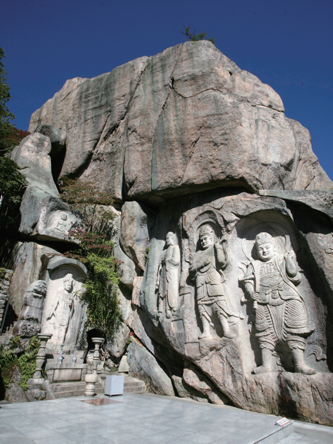 해발 440m인 병풍암(屛風巖)의 석불사는 병풍사 또는 병풍암(屛風庵)이라고도 불리는 절집으로 상계봉 동남쪽 만덕동 산 2번지에 있다. 1930년 조용선(曺容善) 선사가 창건했다. 대웅전 뒤 층층으로 줄 선 집채보다 큰 바위벽에 새겨진 마애불에는 사천왕 석가모니불 십일면관음보살이 있고 미소 짓는 동자상도 보인다. 그아래 석굴에 관음전을 들였다.