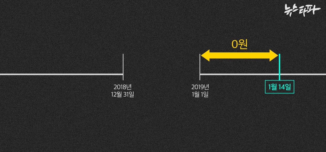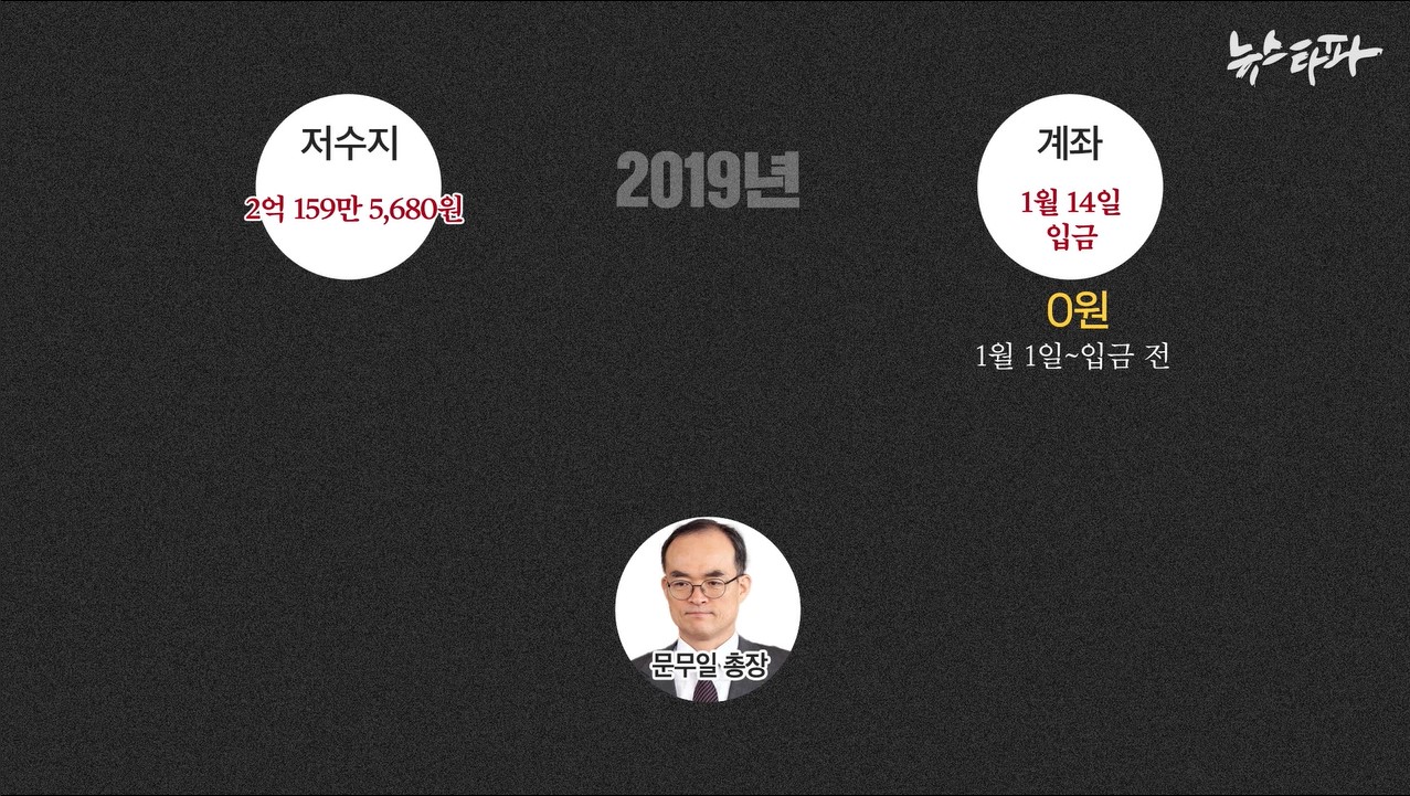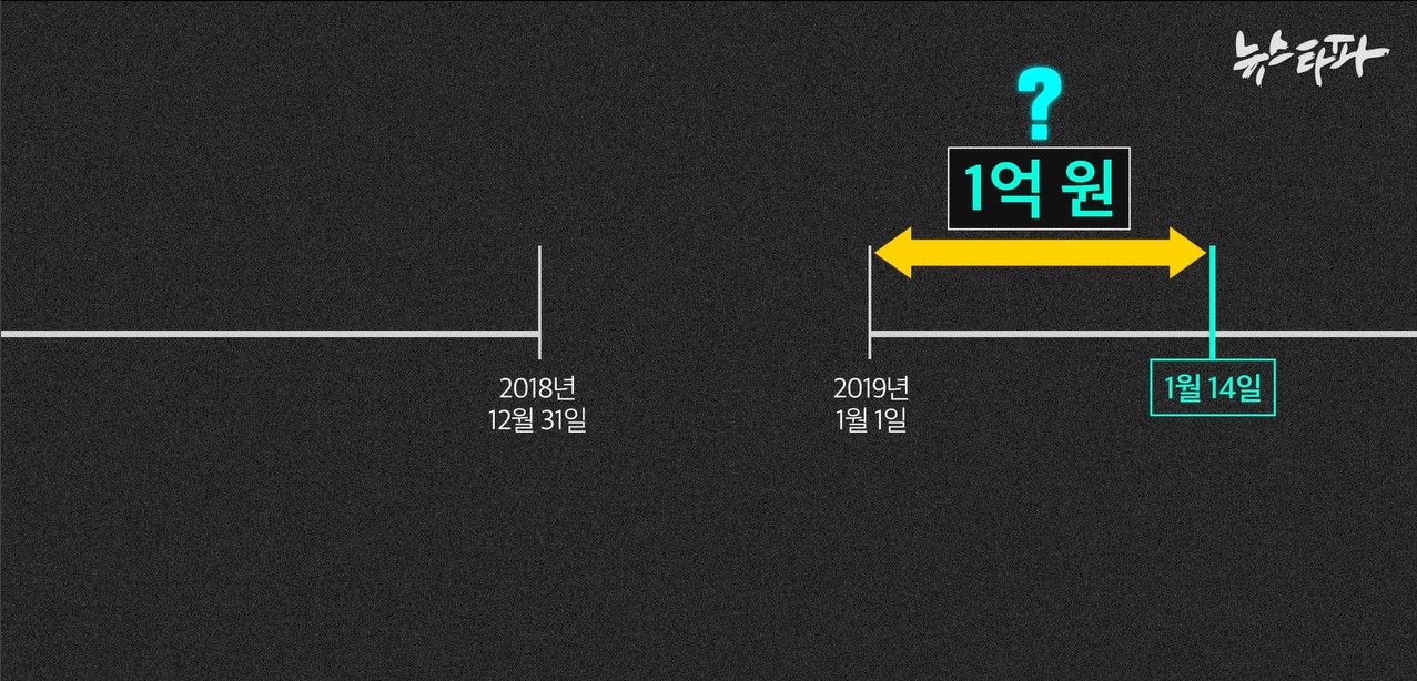 그리고 2019년 새해가 밝았다. 1월 14일, 새해 첫 ‘총장 몫 특수활동비’ 예산이 입금됐다. 2019년 1월 1일부터 14일 입금 전까지 ‘총장 몫 특수활동비’의 계좌상 잔액은 0원이다.