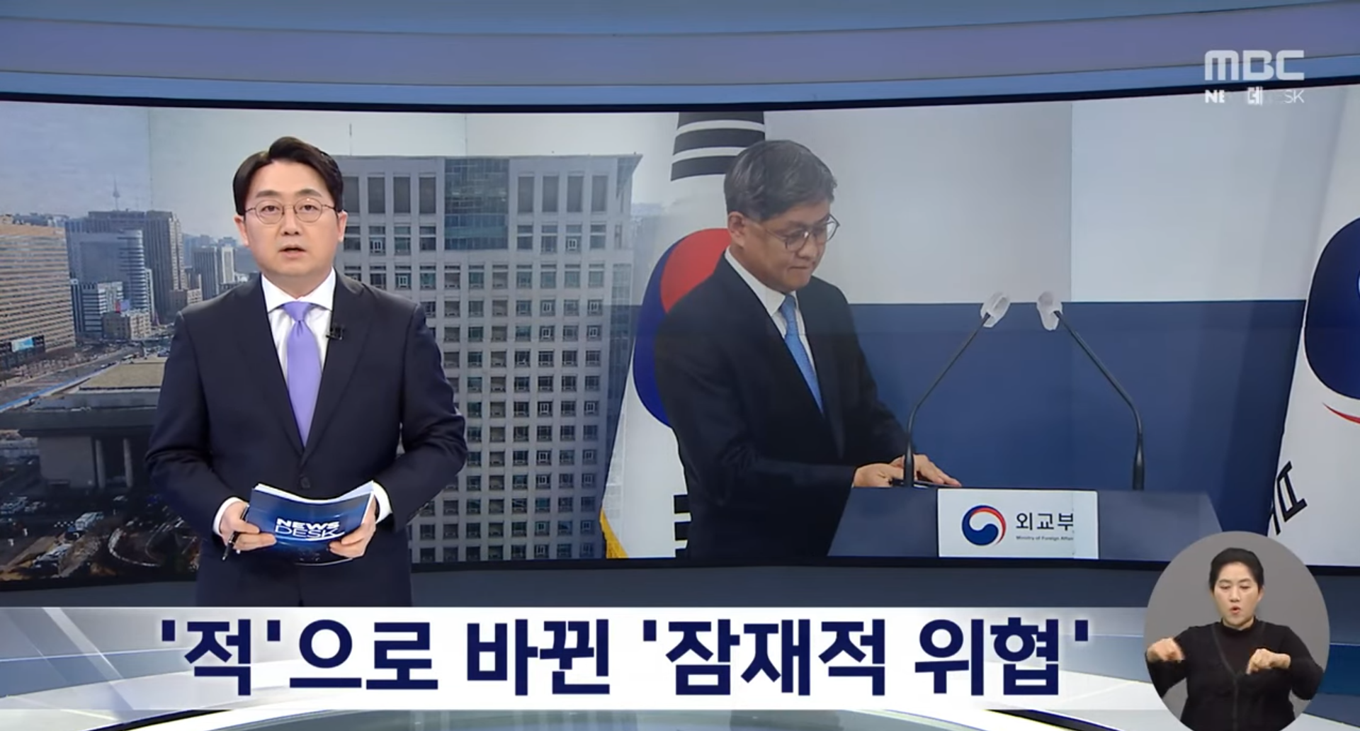 '잠재적 위협'이 왜 '적'으로 바뀌었나? 설명 없는 대통령실 (2023.01.19/뉴스데스크/MBC)
