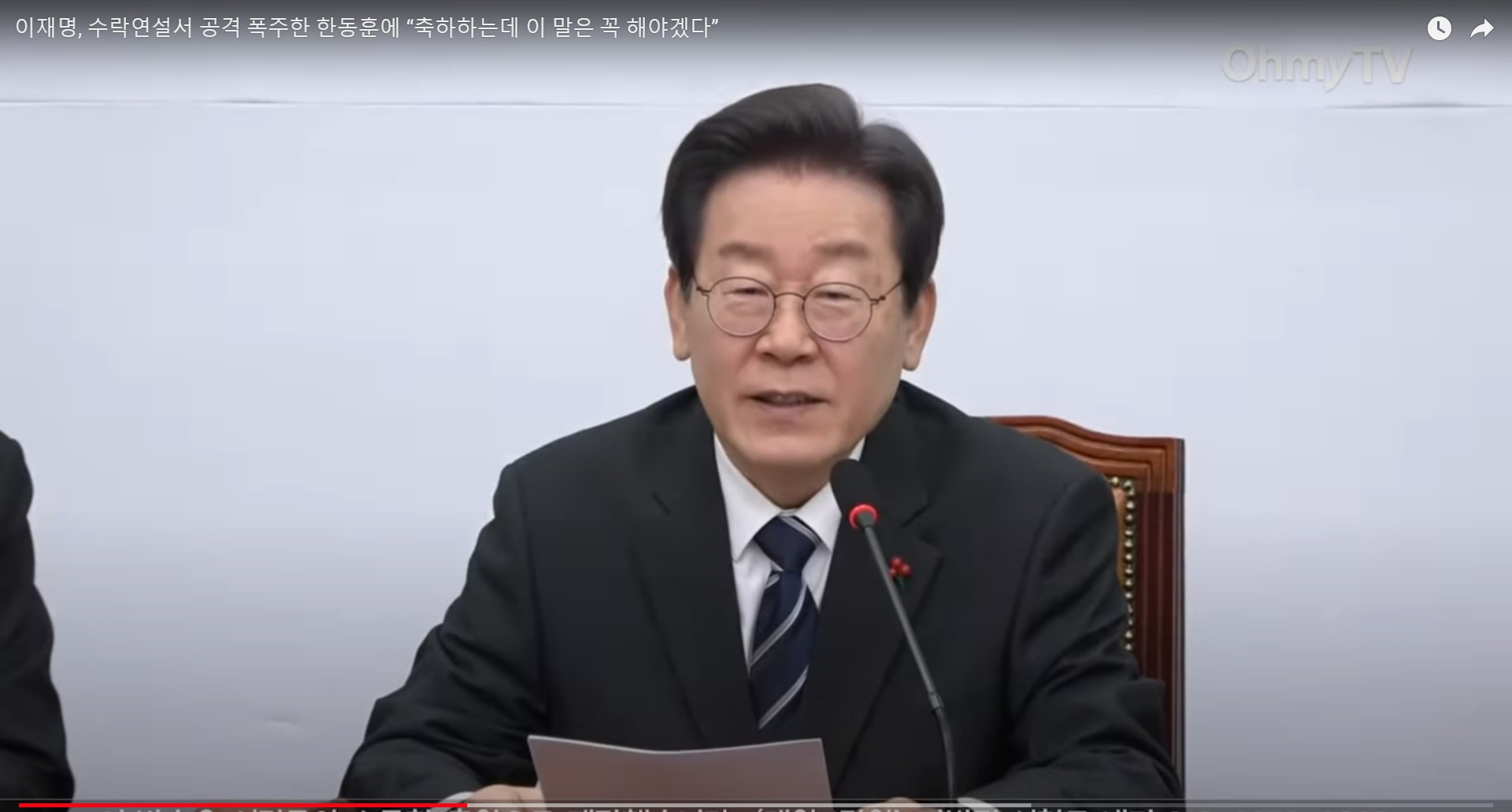 이재명, 수락연설서 공격 폭주한 한동훈에 “축하하는데 이 말은 꼭 해야겠다” 한동훈 비대위원장 폭주