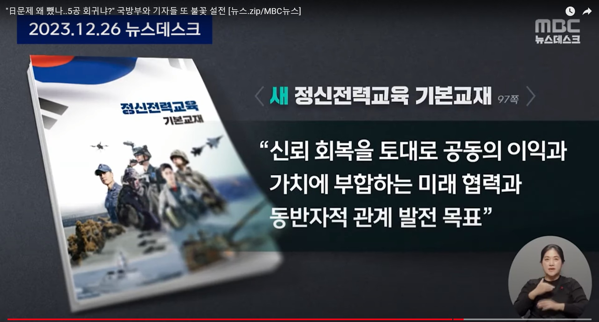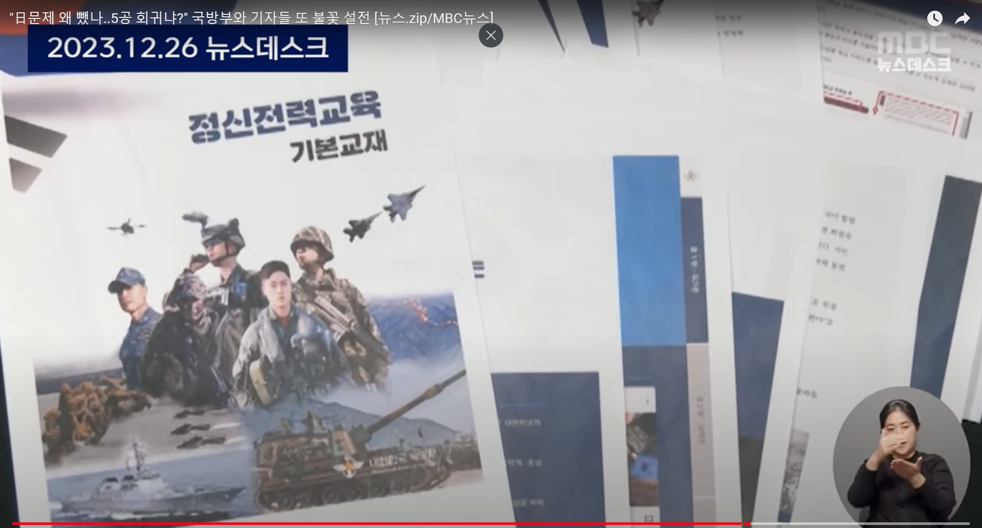 06:26 '역사·영토 문제' 쏙 빼고 한일관계 서술‥장병들에 편향 교육? (2023.12.26/뉴스데스크/MBC)