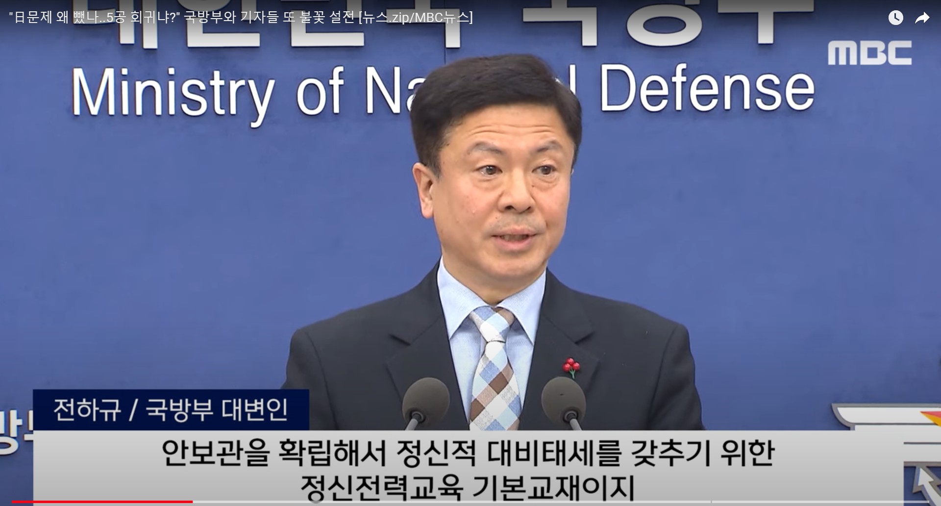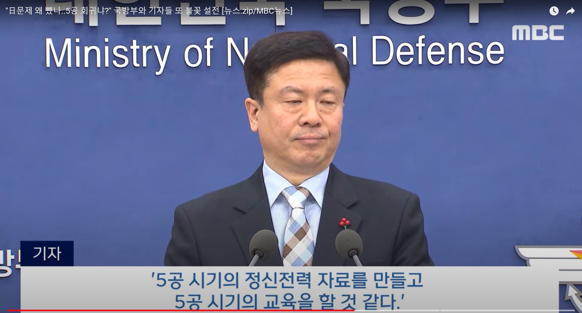 00:00 "日문제 왜 뺐나..5공 회귀냐?" 국방부와 기자들 또 불꽃 설전 (2023.12.27/MBC뉴스)