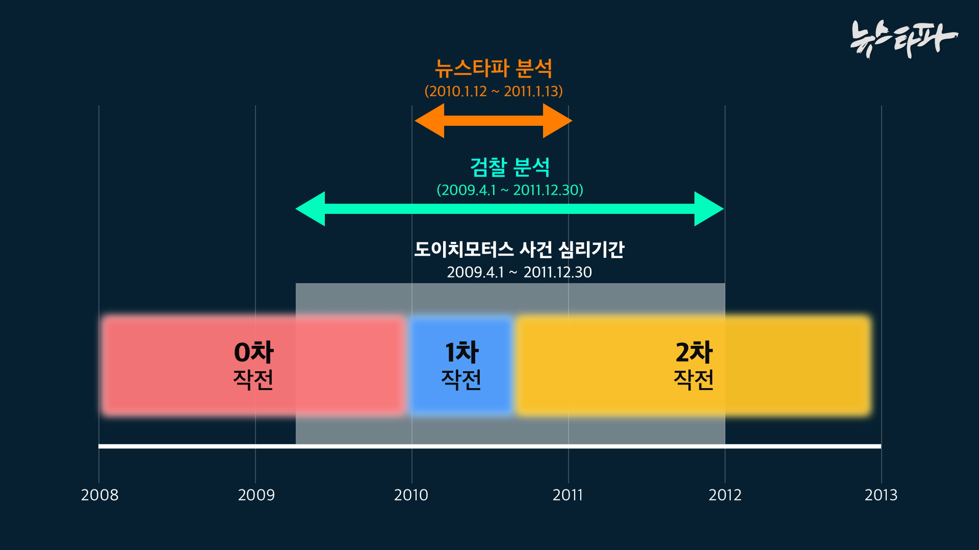 검찰이 한국거래소에 의뢰한 이상거래 심리분석 대상기간은, 도이치모터스 주가조작 사건의 '1차 작전' 시기 전부와 '2차 작전' 시기 전반부, '0차 작전' 후반부를 포함한다.