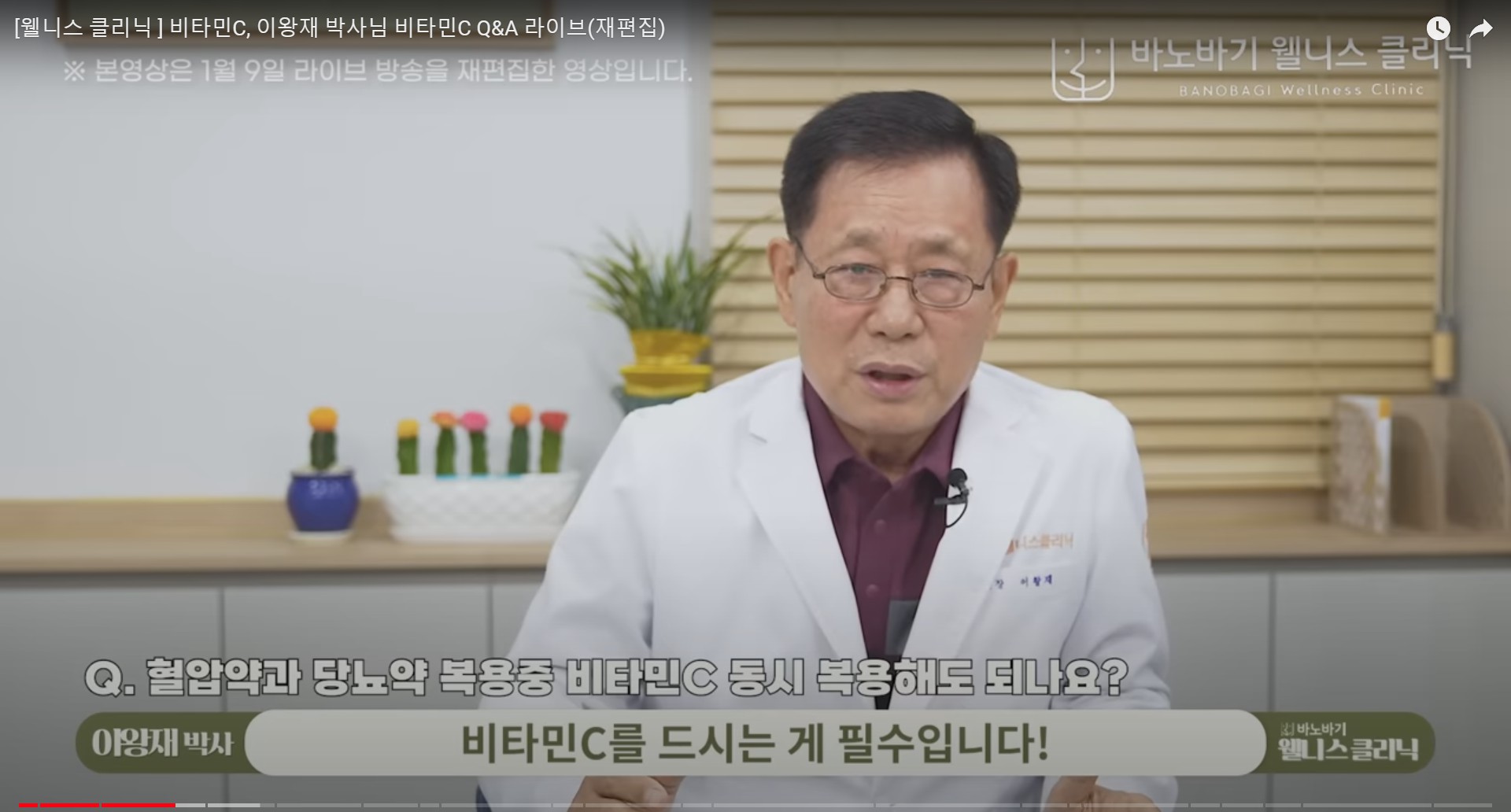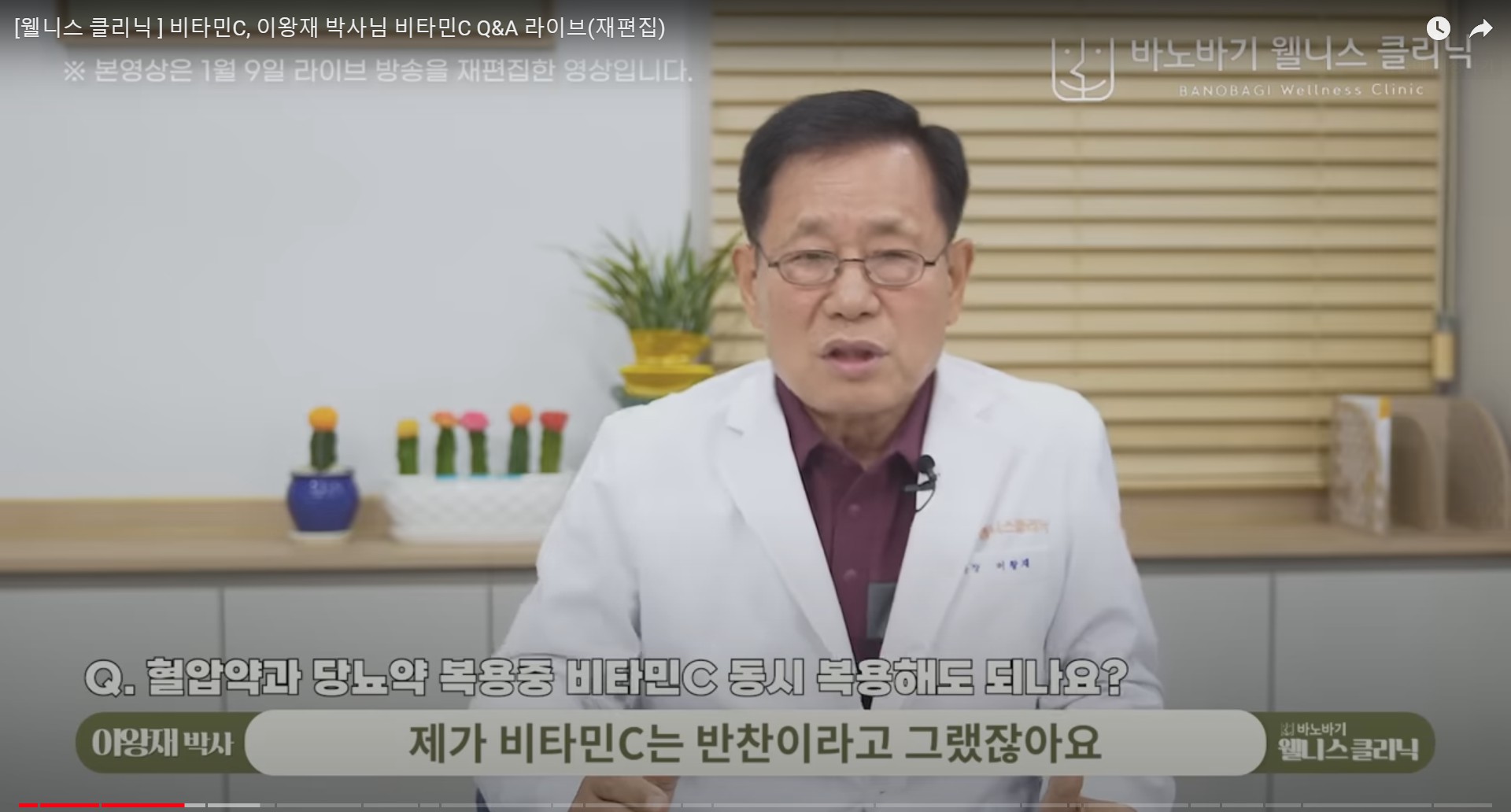 [웰니스 클리닉 ] 비타민C, 이왕재 박사님 비타민C Q&A 라이브 - 치매, 혈압약, 뇌경색, 임산부, 위궤양, 우울증, 갱년기, 어린니, 메가도스, 빈혈, 전립선비대