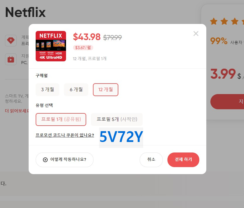 가입 후 넷플릭스 선택하여 결제를 진행하면 된다.