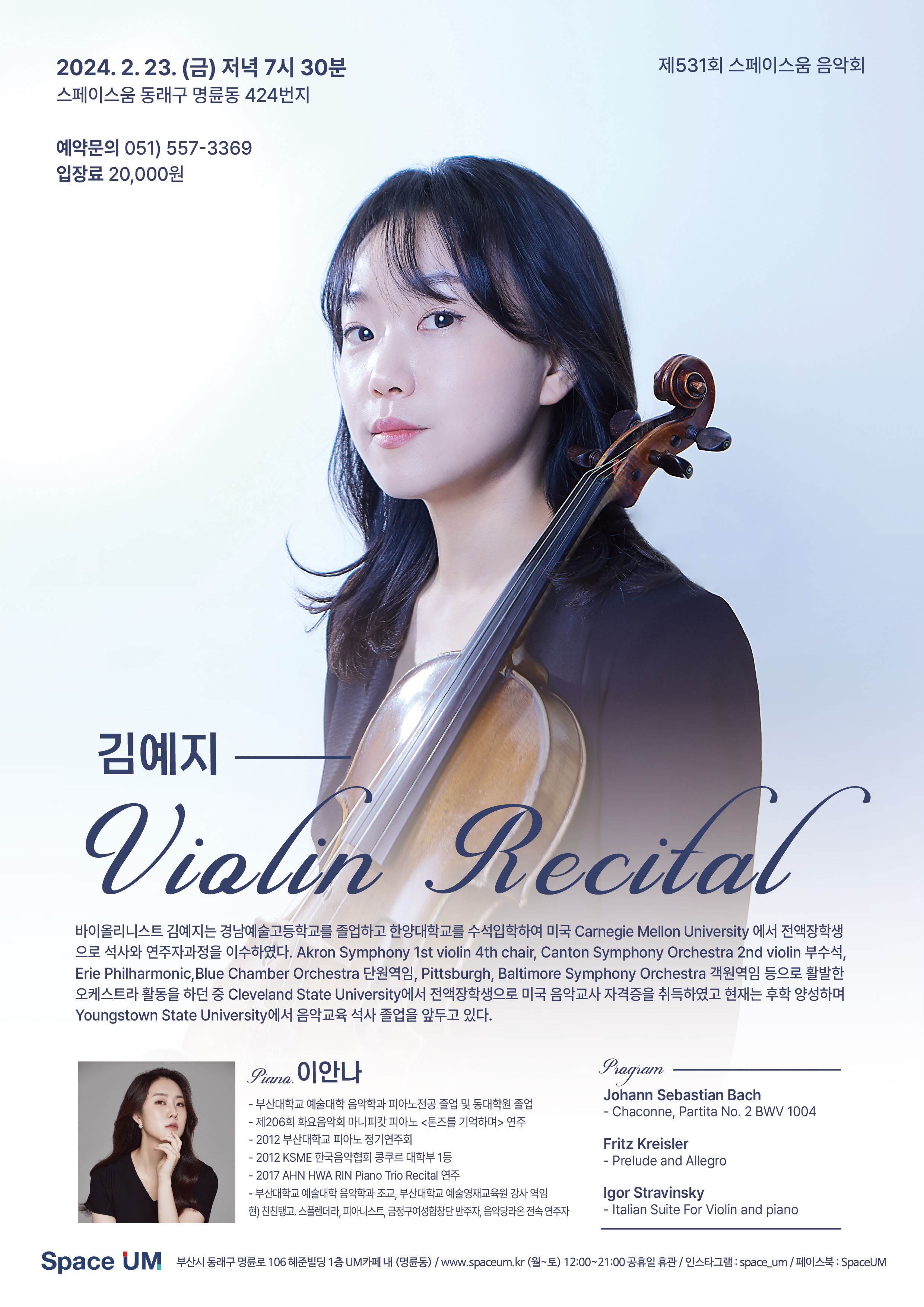 제531회 스페이스움 음악회 "김예지 바이올린 리사이틀" 피아노 이안나