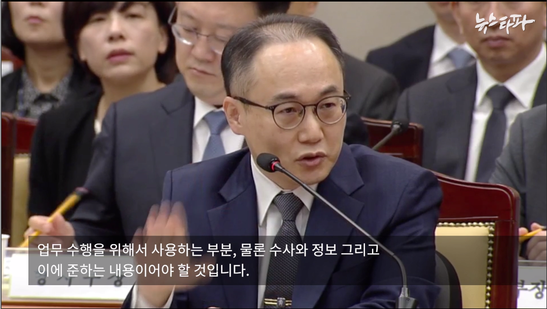 최영주 전 실장은 이렇게 민원실에 배당한 30만 원으로 민원 직원 여섯 명과 함께 5만 원짜리 회식을 했다고 말했다. 그는 수사 부서가 아닌 민원실에 내려주는 특활비는 결국, ‘회식 용도’로 쓰일 수밖에 없다고 말했다.