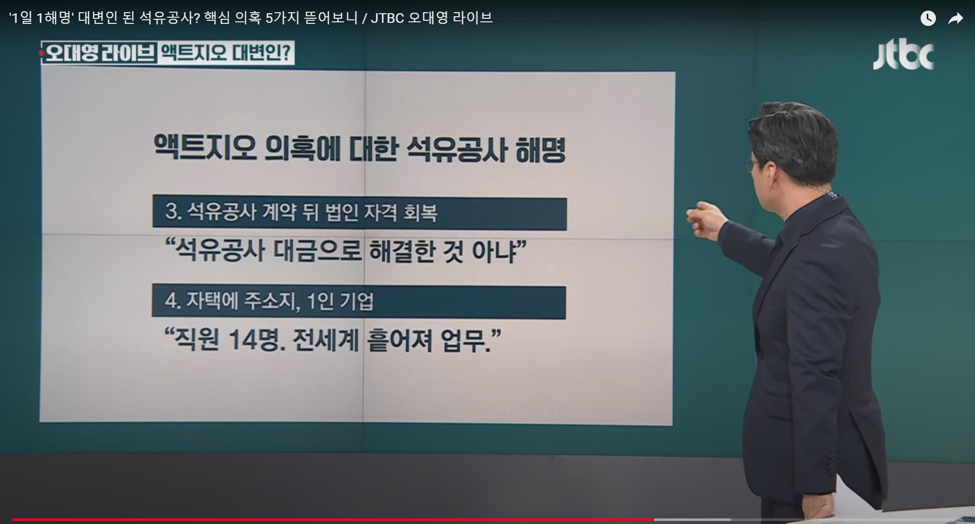 '1일 1해명' 대변인 된 석유공사? 핵심 의혹 5가지 뜯어보니. 액트지오 의혹 해명, 4년간 세금체납 200만원, 연간매출 3천만원 기