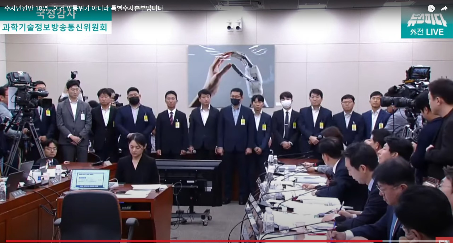 수사인원만 18명...이건 방통위가 아니라 특별수사본부입니다! 방통위 파견인원 18명. 검찰, 경찰청, 감사원 특별수사본부.