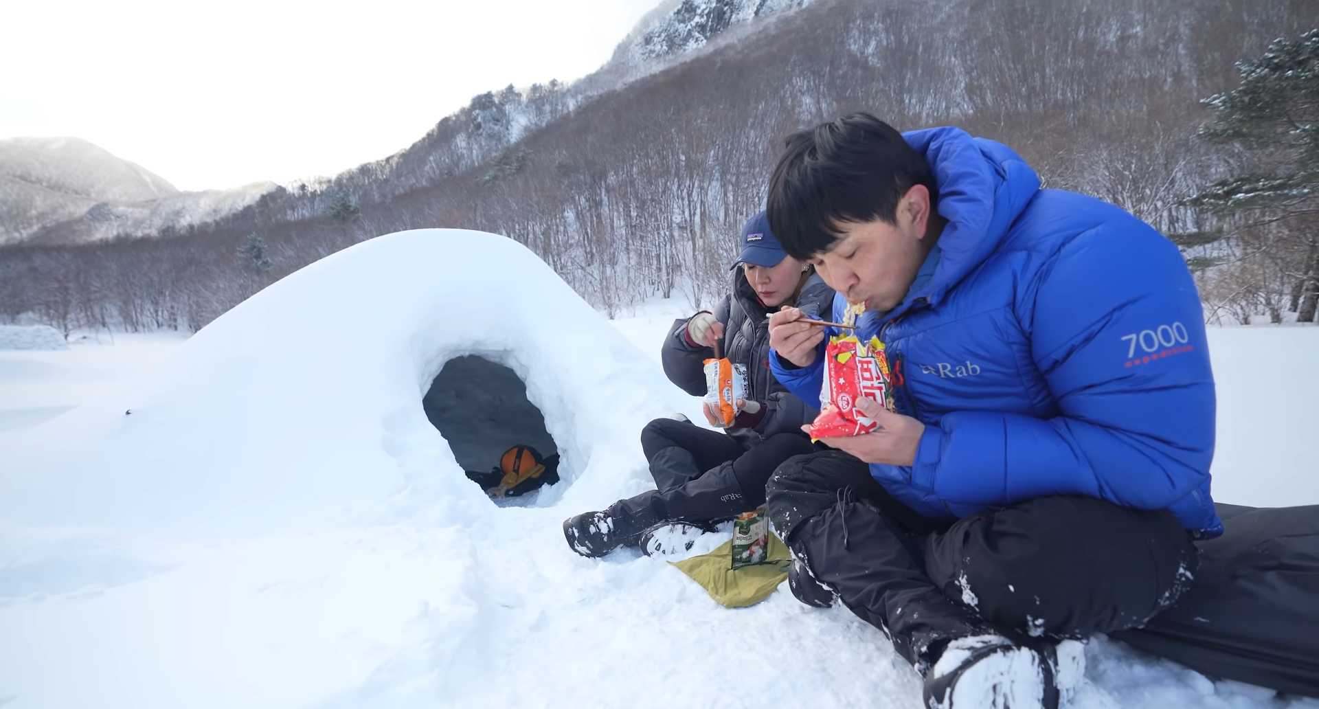 눈속에서 비~~싼 설동 파고 여기서 잡니다│첫번째 겨울 설동 백패킹│울릉 크루즈 타고 나리분지에서