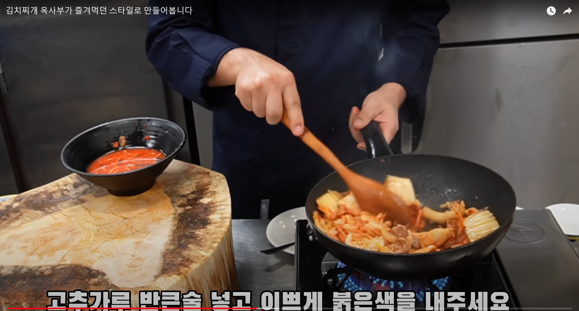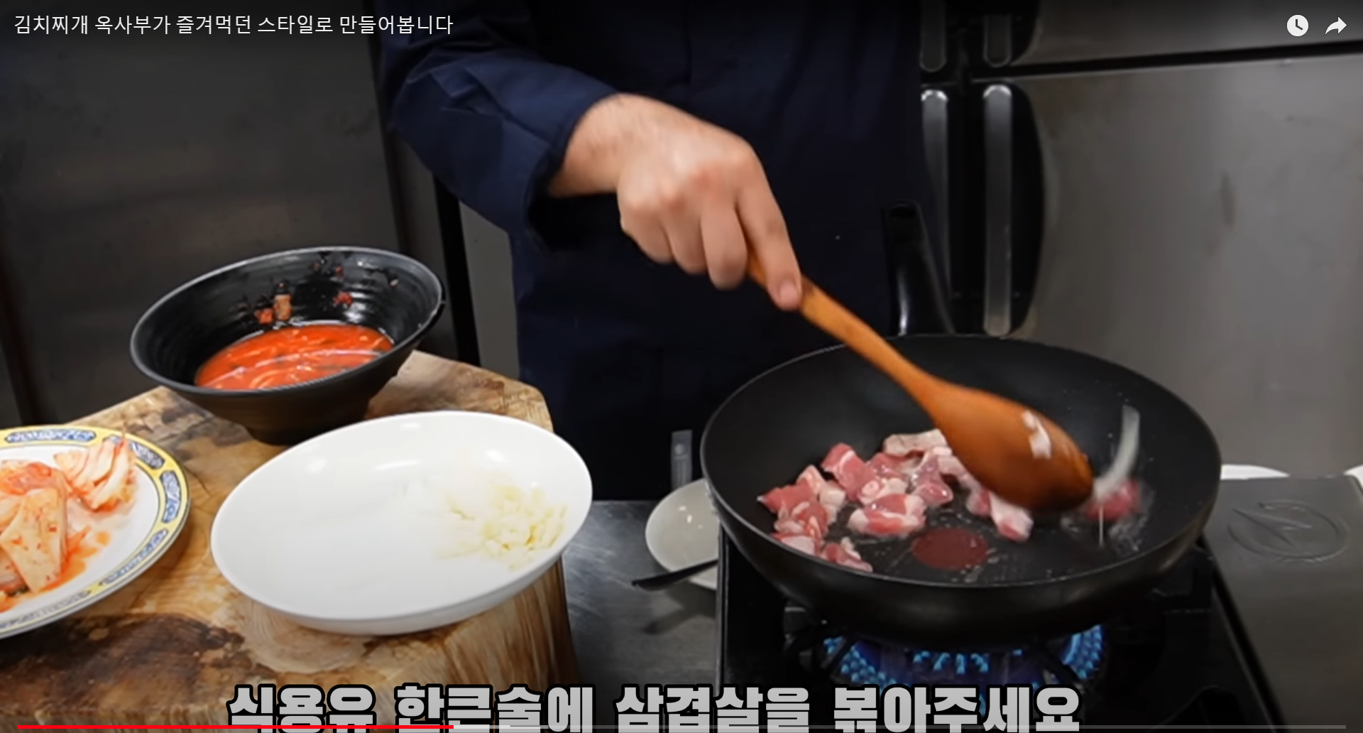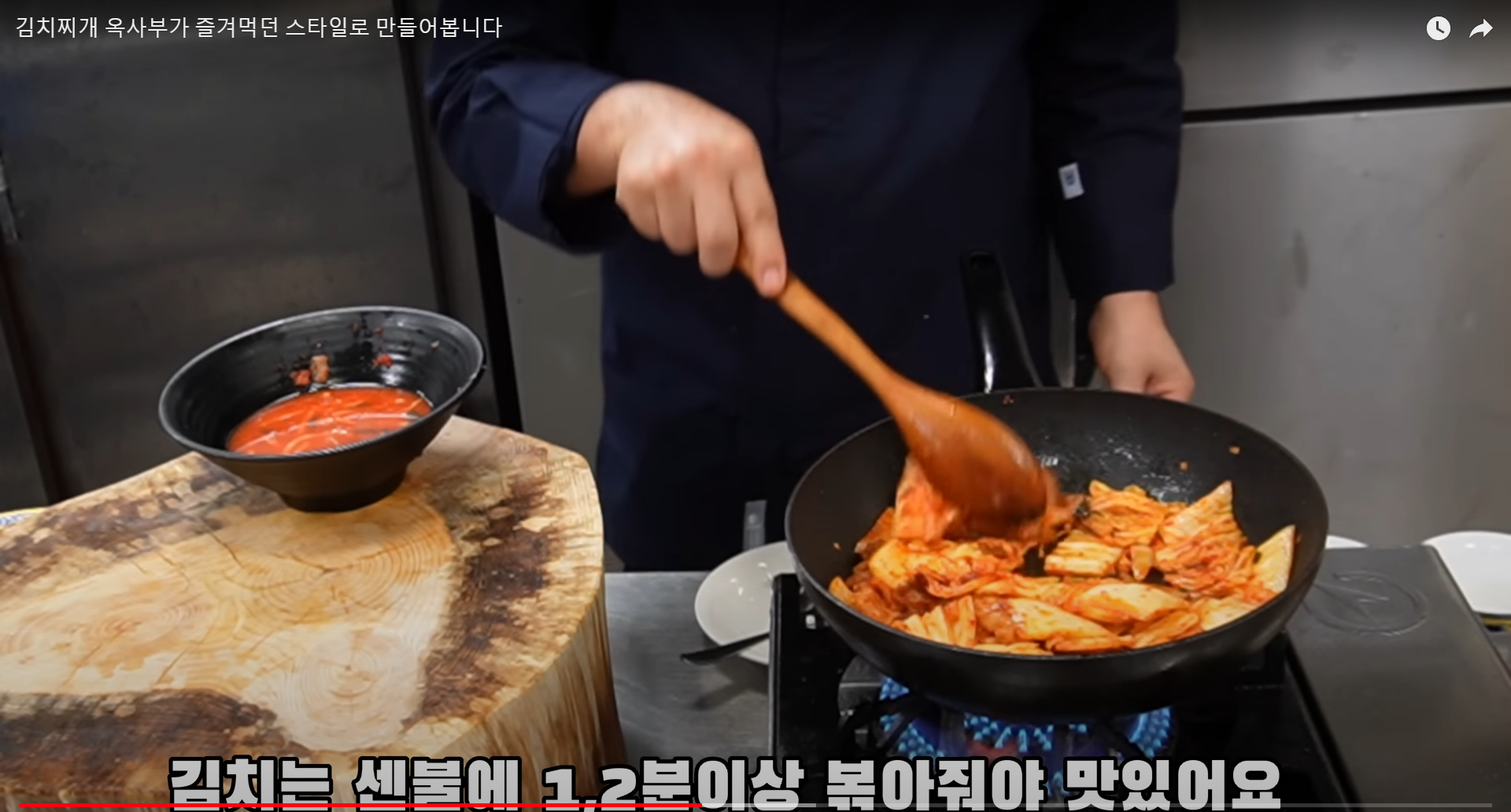 돼지고기와 김치를 모두 충분히 볶아서 고기기름과 김치와 어우러진 맛을 낼 수 있도록 해 주는게 좋습니다.