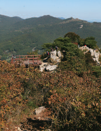 갈림길서 5분 정도 걸으면 등산로와 만나 동문으로 내려가게 되는데 7~8분이면 넓 은 소나무 광장에 내려서고 이어 출발했던 동문에 닿는다.